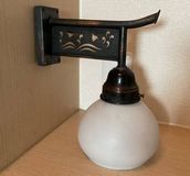 商品番号bs3555 艶消し乳白ガラス壁灯 和灯ブラケット照明 サイズ 全体高さ30×横29㎝ 笠 直径16㎝ 価格 29000円