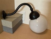 商品番号bs4408新入荷! 丸玉乳白ガラス電笠付き 鶴首ブラケット壁灯照明 サイズ 全体高さ30×横38㎝ (笠 直径16×口径8㎝) 価格 34000円new