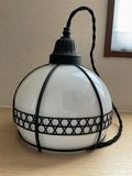 商品番号bs3352 新入荷! 菱文 乳白ガラス電笠 チェーン吊り照明 サイズ 全体高さ60×直径35 |