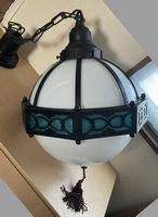 商品番号bs4351 新入荷! 丸玉乳白ガラス電笠付き青色ダイヤガラス入り八角装飾一灯吊り照明 サイズ 全体高さ90×直径34.5p 価格 162000円new