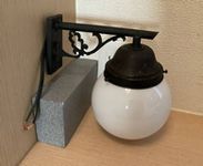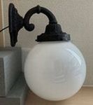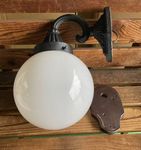 商品番号bs4301新入荷! 乳白ガラス丸玉電笠付き外灯 サイズ 全体横51㎝ (笠直径20×口径10㎝)