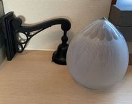 商品番号bs4327新入荷! 乳白ガラス丸玉電笠付き 雲形透かしホルダーブラケット照明 サイズ 全体横47㎝ (笠直径15.5×口径7.7㎝)