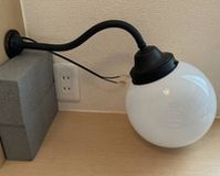 商品番号bs4408新入荷! 丸玉乳白ガラス電笠付き 鶴首ブラケット壁灯照明 サイズ 全体高さ30×横38㎝ (笠 直径16×口径8㎝) 価格 34000円new