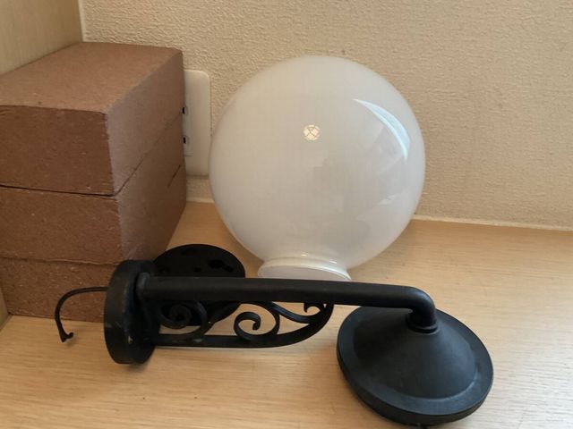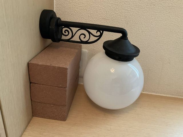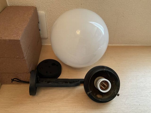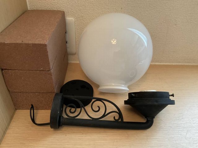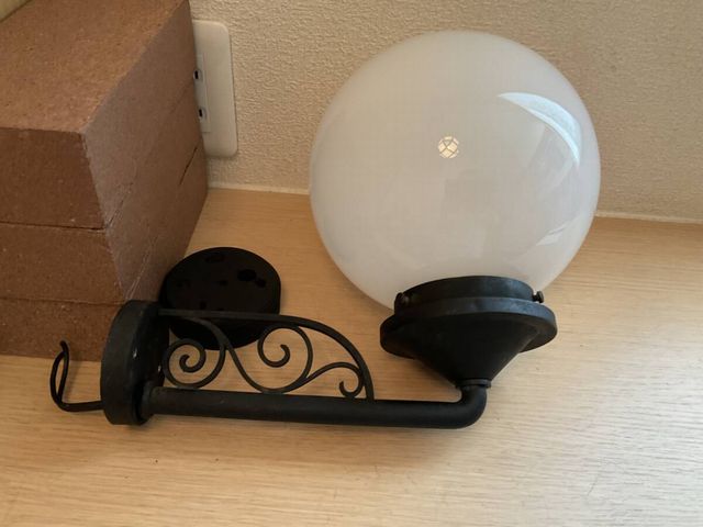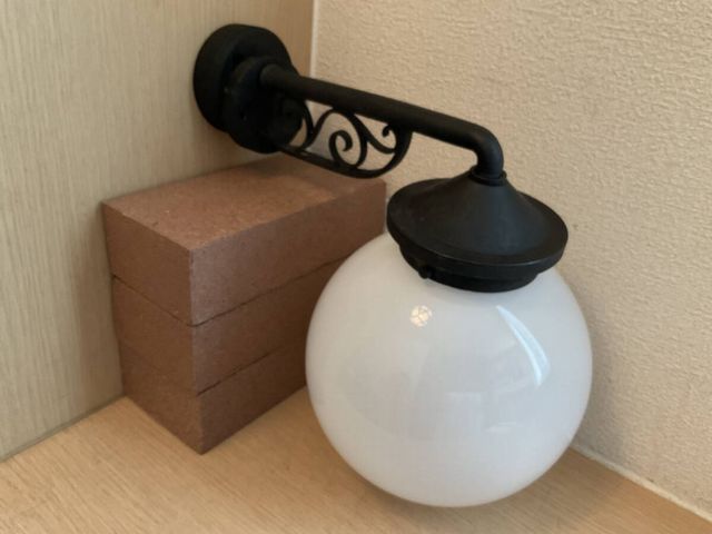 丸玉乳白ガラス電笠付き唐草文様装飾上手ブラケット照明