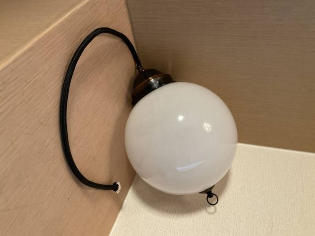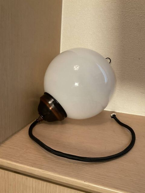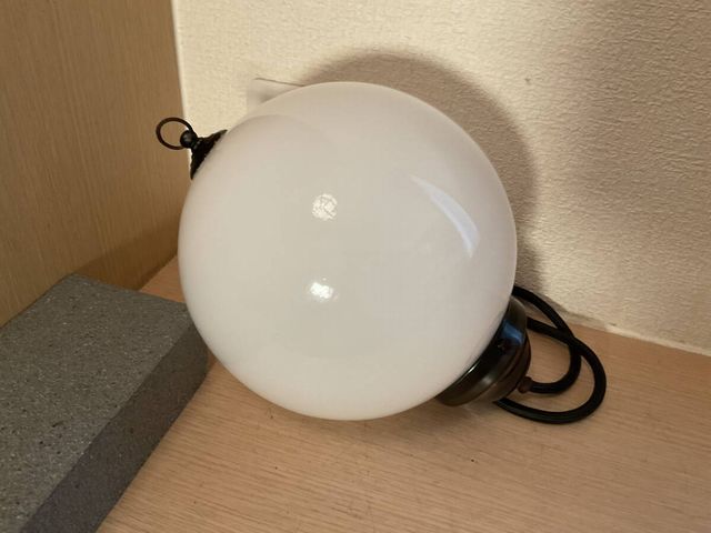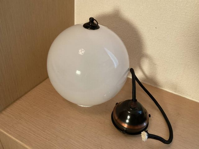 小ぶり 擬宝珠付き丸玉乳白ガラス電笠ペンダント照明
