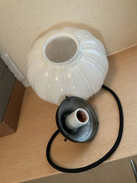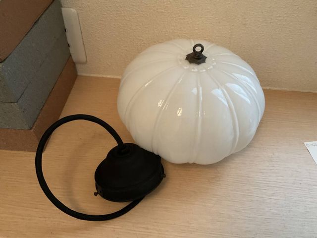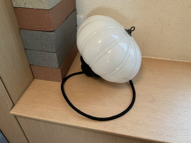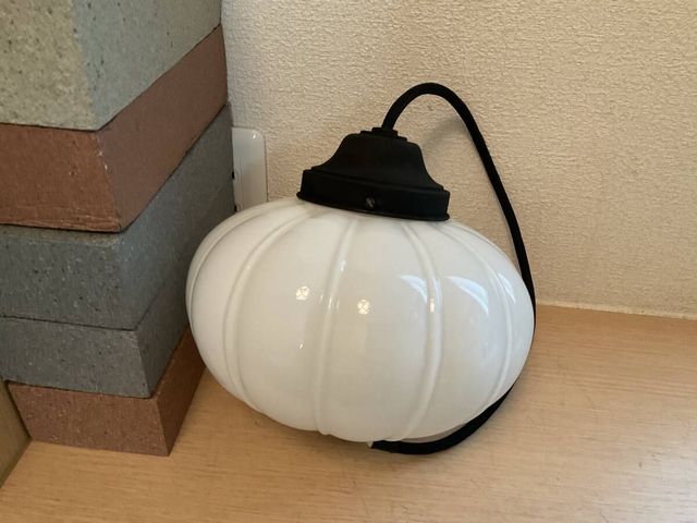 ぼんぼり形乳白プレスガラス電笠付きペンダント照明 @