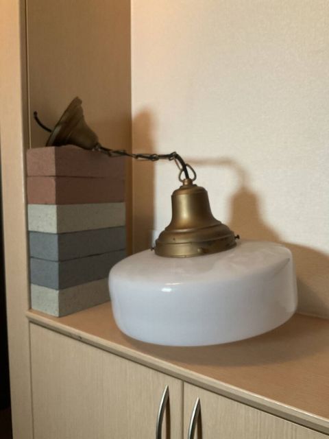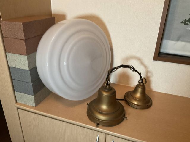 大ぶり 乳白ガラスグローブ電笠付き一灯吊り照明