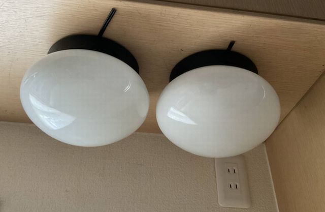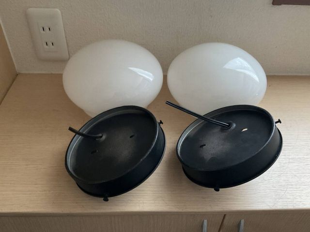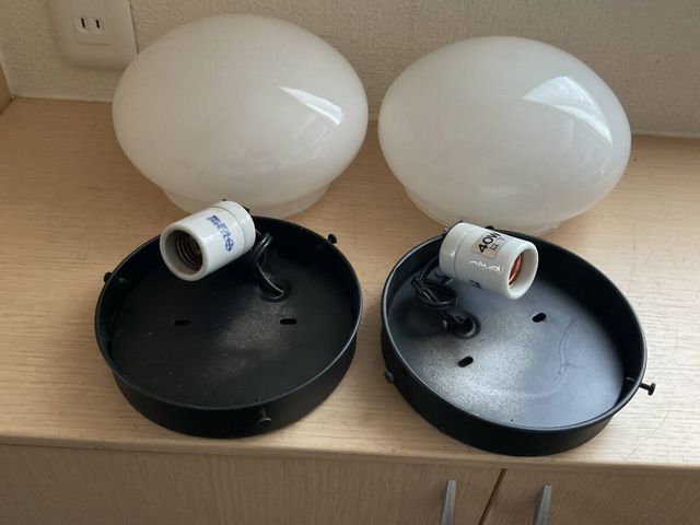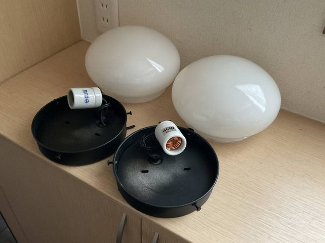 小ぶり 乳白ガラス電笠付き天井直付け照明 2個セット