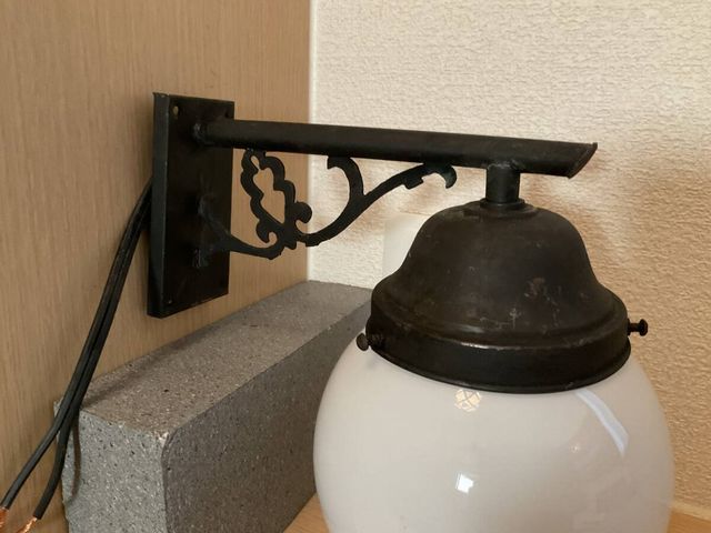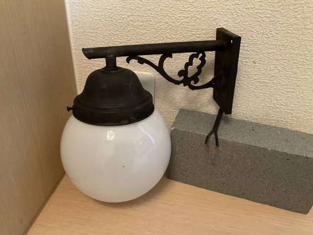 丸玉乳白ガラス電笠付き唐草文様ブラケット照明