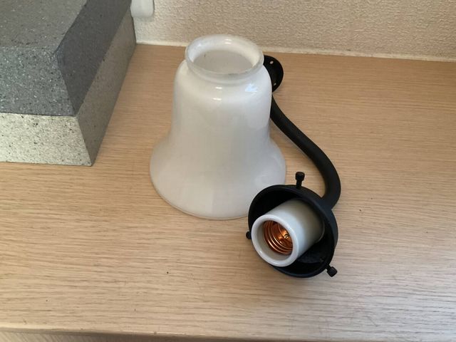 小ぶり ベル形乳白ガラス電笠付きブラケット照明