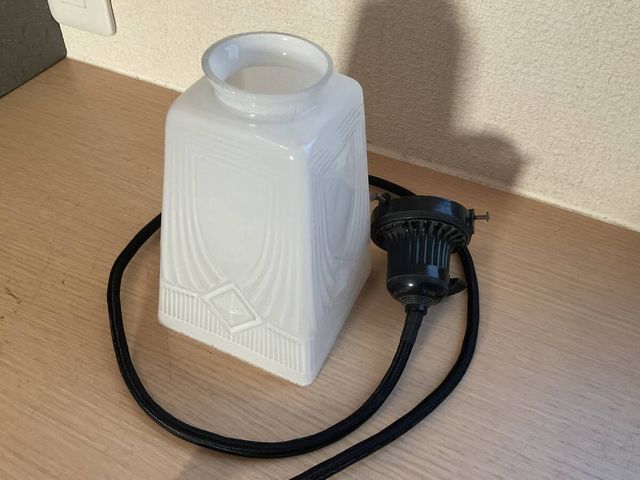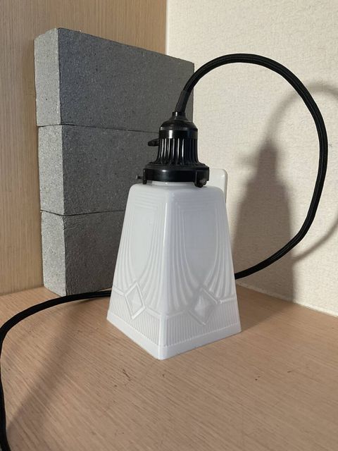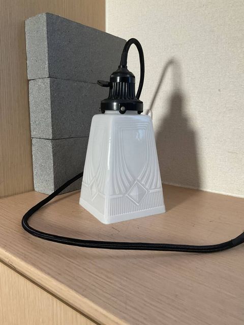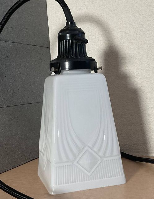 小ぶり乳白プレスガラス電笠付きベイクライト菊形ホルダーペンダント照明