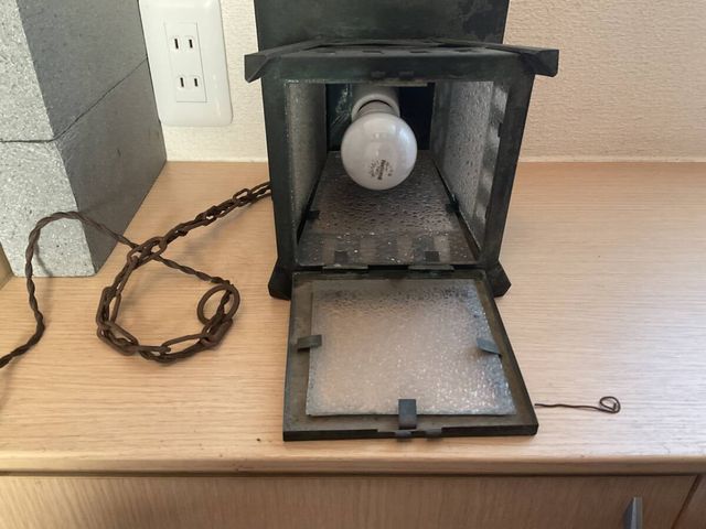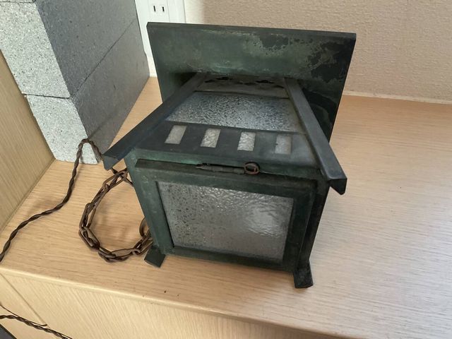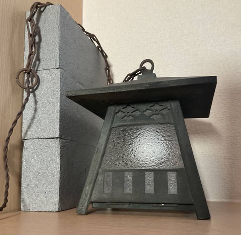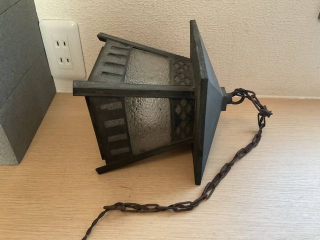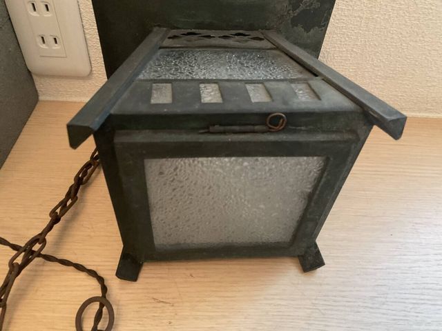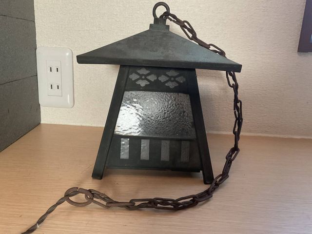 吊り灯籠形一灯吊り照明 ペンダント照明 サイズ 約 鎖含む全体縦75×横18.5×鎖のみの長さ53cm ガラスに気になるワレカケは、ありません。 経年による傷や汚れなどがあります。 配線は新しいものに交換済みです。 電球は口金E26をお使いください。 電球は付属しません。LEDでもお使い頂けます。 状態は、写真にてご判断頂ければ幸いです。 なにぶん古いモノですので御理解よろしくお願い致します。