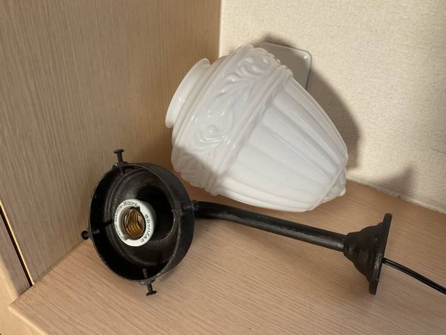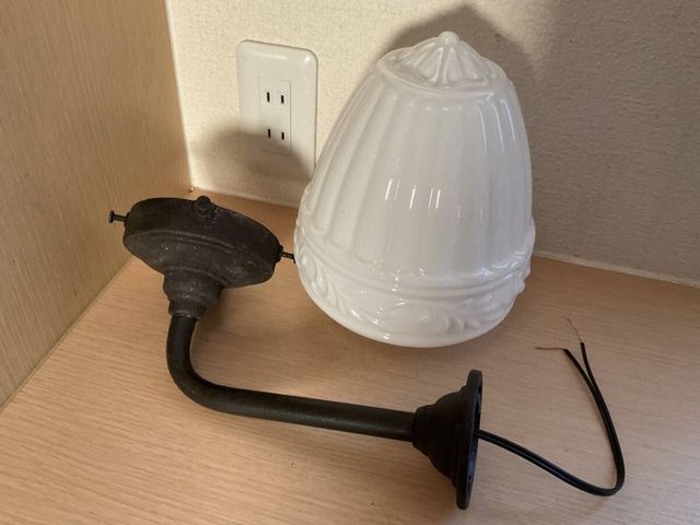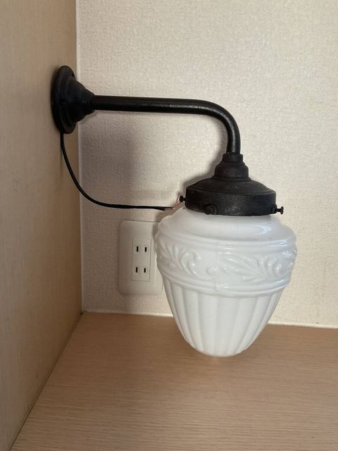 乳白プレスガラス月桂樹電笠付きブラケット照明