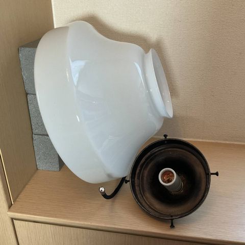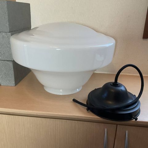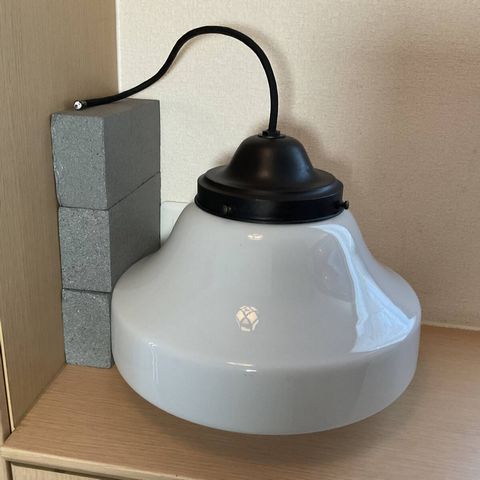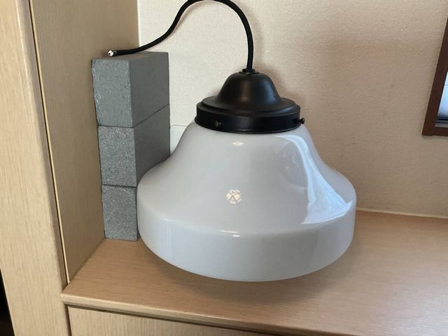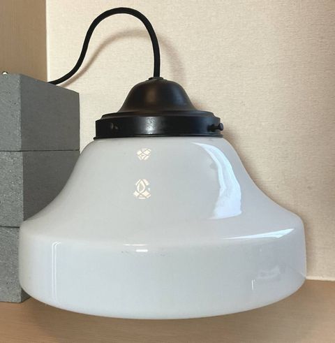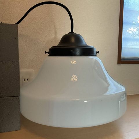 大ぶり 乳白ガラスグローブ電笠付きペンダント照明