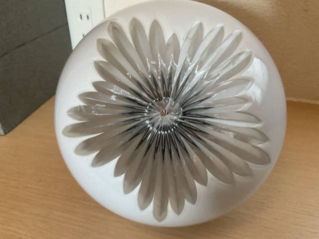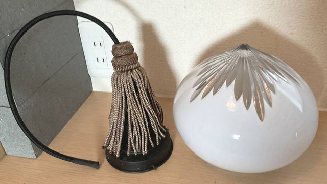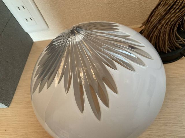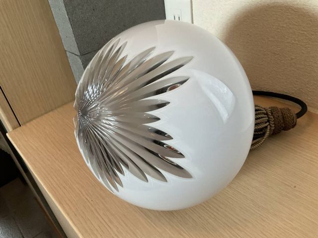 珍品 白切子放射カットのかぶら形乳白ガラス電笠 房付きホルダー付き ペンダント照明
