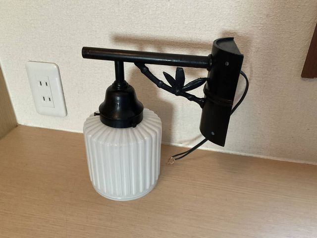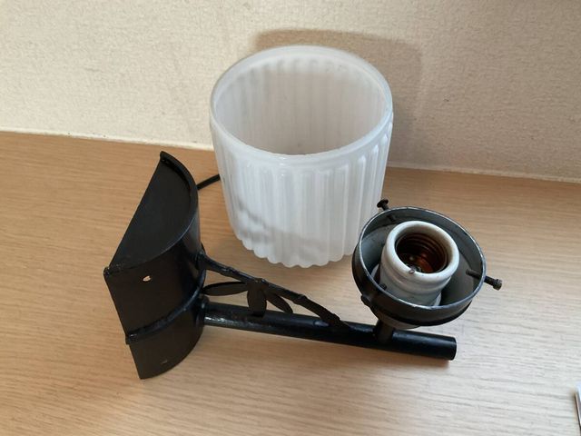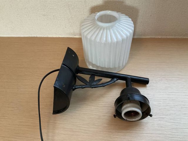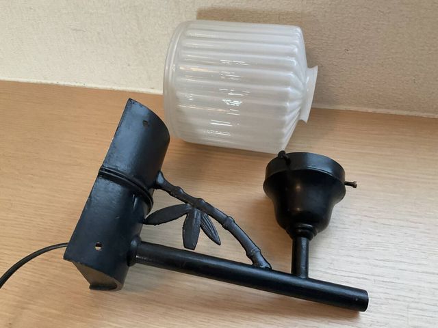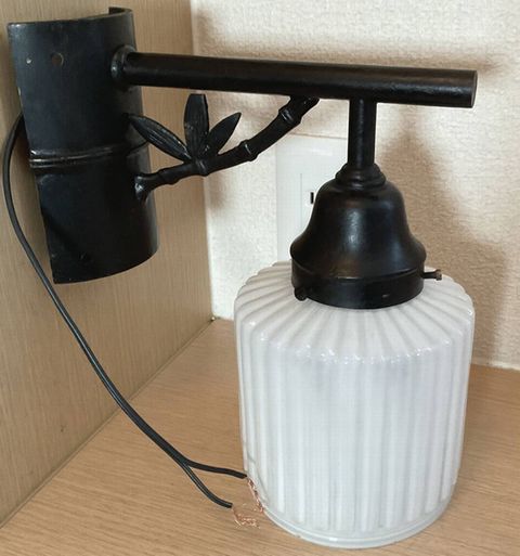 縞模様乳白プレスガラス電笠付き竹文様装飾ブラケット照明