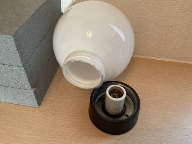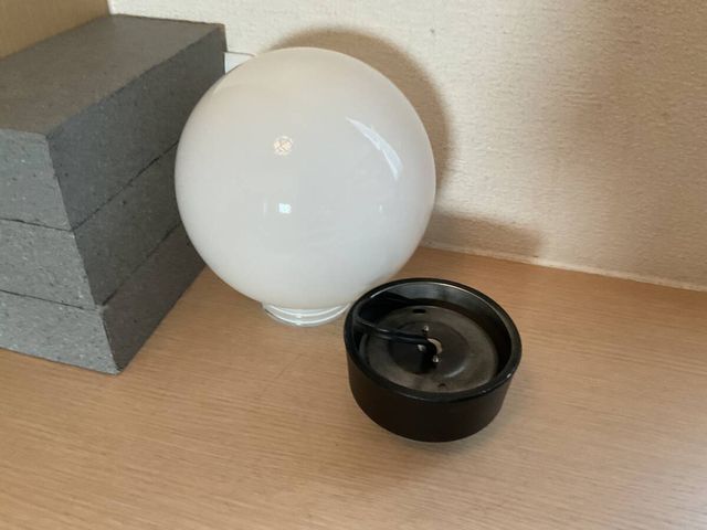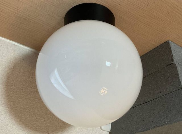ねじ込み乳白ガラス丸玉電笠付き天井直付け照明