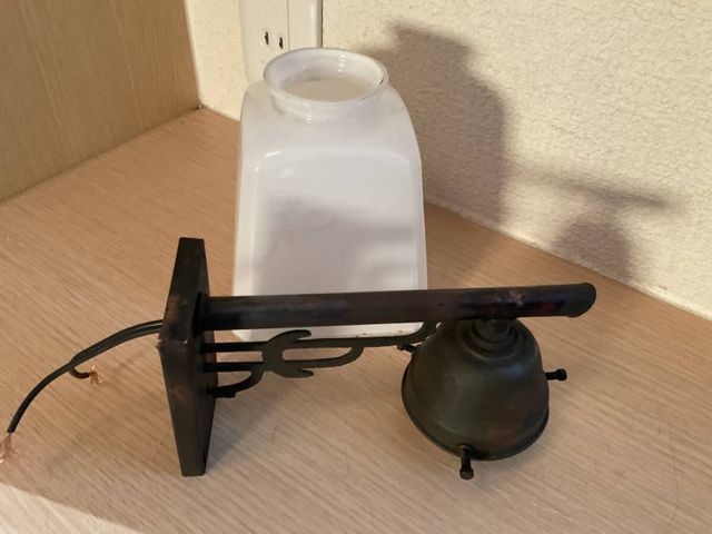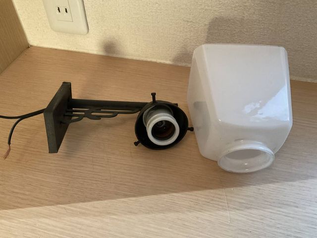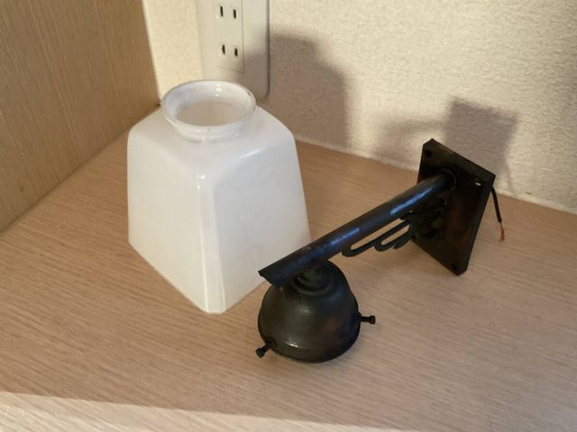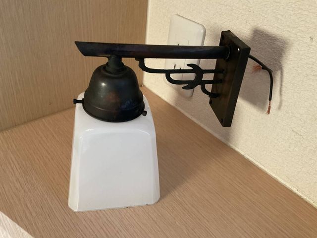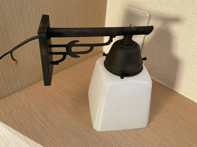 小ぶり 四角乳白ガラス電笠付き月に雲文様ブラケット壁灯照明