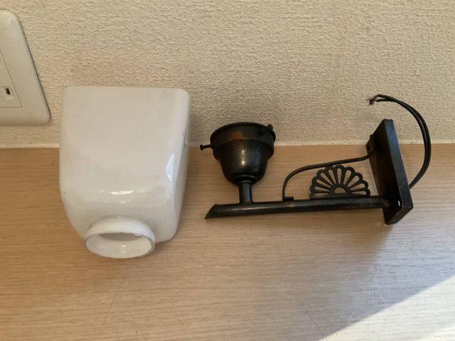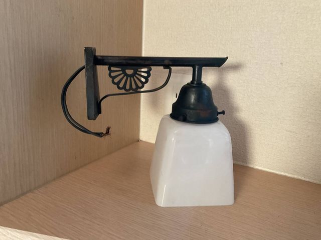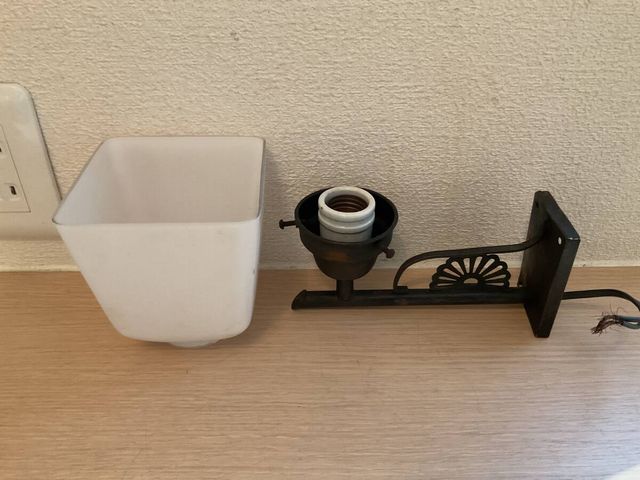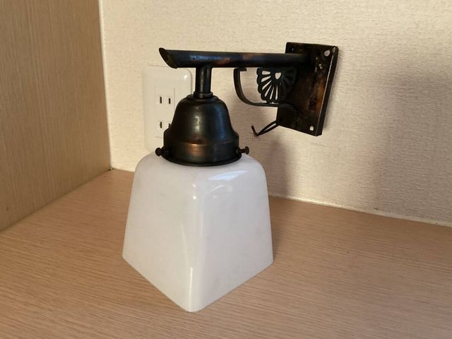 小ぶり 四角乳白ガラス電笠付き菊水文様ブラケット壁灯照明