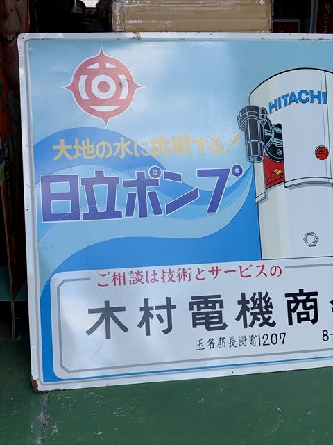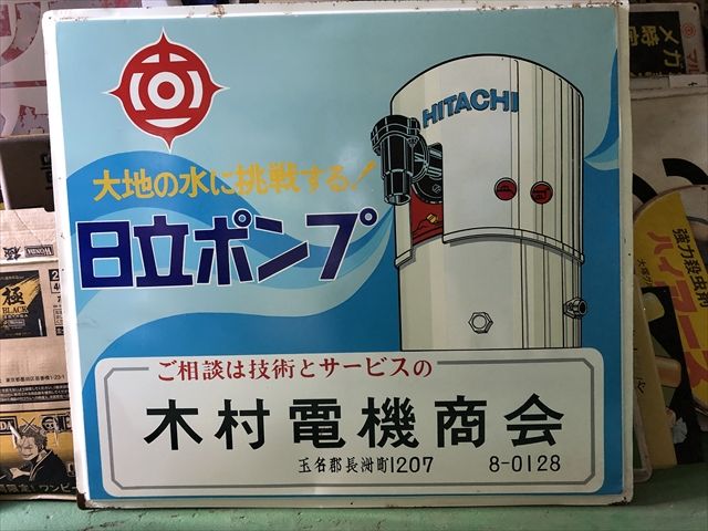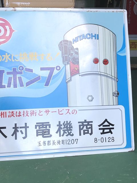 大地の水に挑戦する 日立ポンプ 片面鉄板印刷看板です。