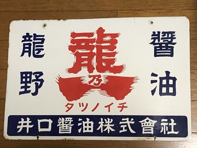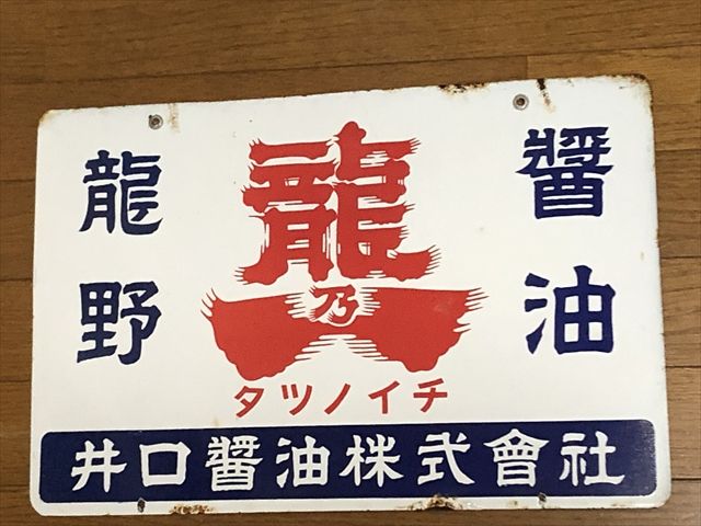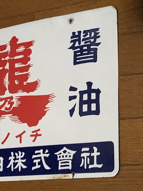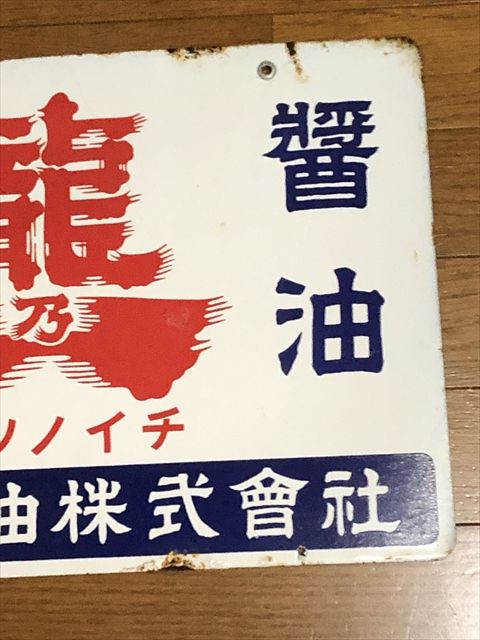 龍乃一しょうゆ 両面 ホーロー看板です。