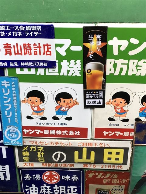 ホーロー看板等まとめて31点セット 朝日新聞ヤンマー毎日新聞ヒゲタしょうゆ銘酒白鹿 たばこ米ナショナル乾電池 サイズ ヤンマー 縦90×横60cm程度 レトロ看板など32枚セットです。 おもに琺瑯や鉄板、木製、プラスチックの看板、ポスターも含みます。 経年による汚れスレ錆ハガレがあります。 看板は、バラの状態です。パネル状に加工した物ではありません。 状態は、写真にてご判断頂ければ幸いです。 なにぶん古いモノですので御理解よろしくお願い致します。 戻る