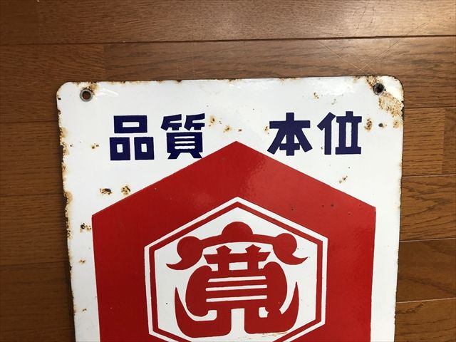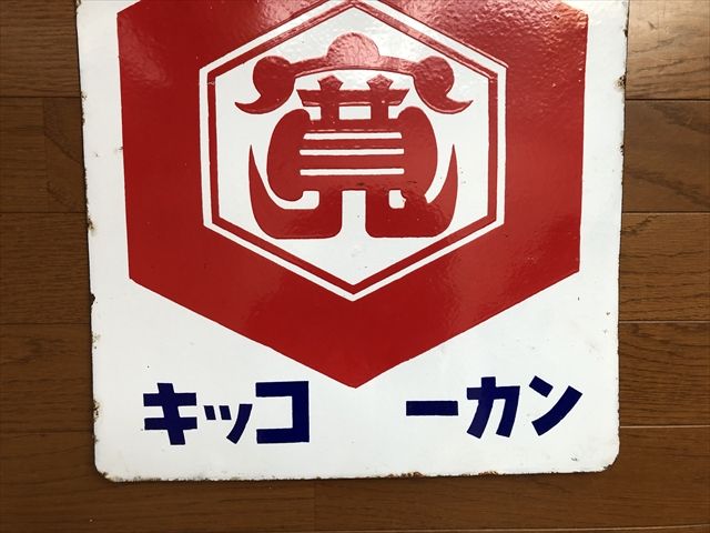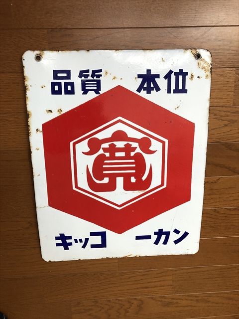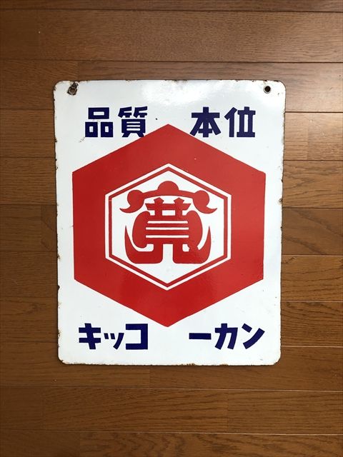 品質本位 キッコーカン 両面ホーロー看板です。