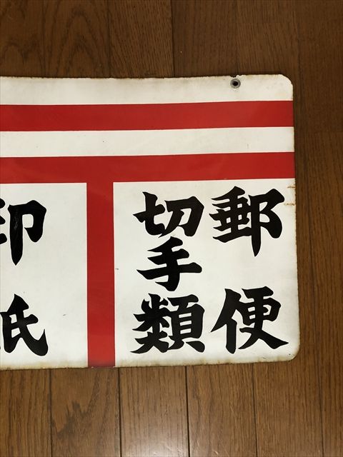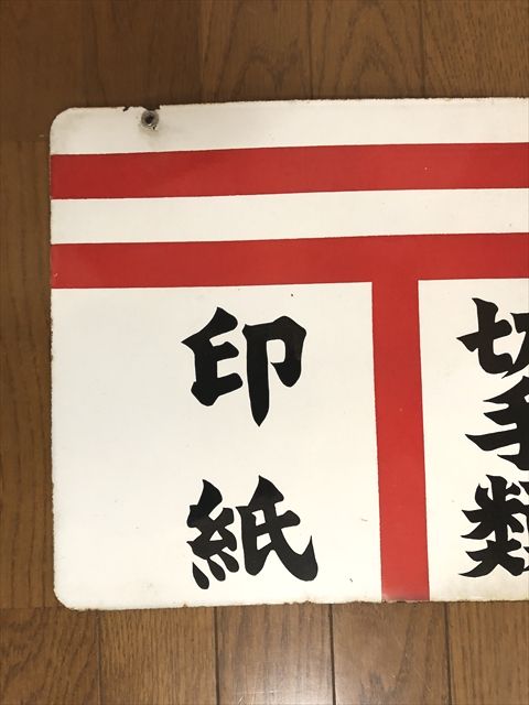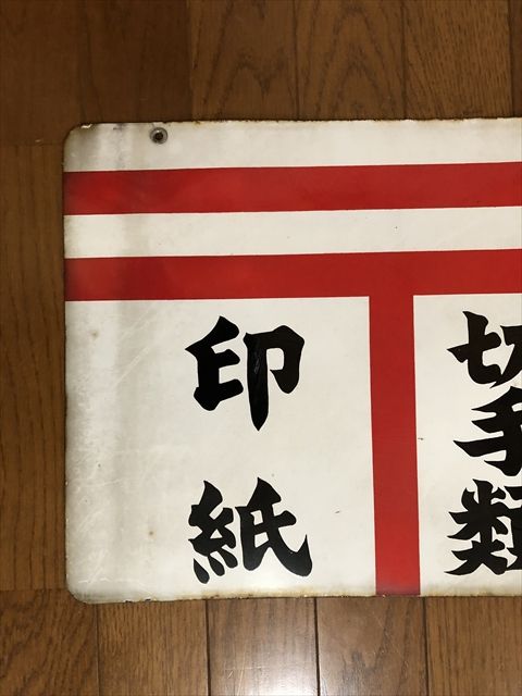 郵便 切手類 印紙 両面 ホーロー看板 サイズ 約 縦33×横45cm程度 写真は、それぞれ表、裏面です。 経年による傷やよごれ、錆、ホーローのハガレなどがあります。 状態は、写真にてご判断頂ければ幸いです。 なにぶん古いモノですので御理解よろしくお願い致します。 戻る
