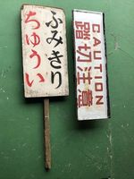 新入荷!商品番号sr3807 ふみきりちゅうい木製看板/ 踏切注意 メタル看板セット サイズ 木製看板 縦108×横30cm メタル看板 縦24×横75×47cm