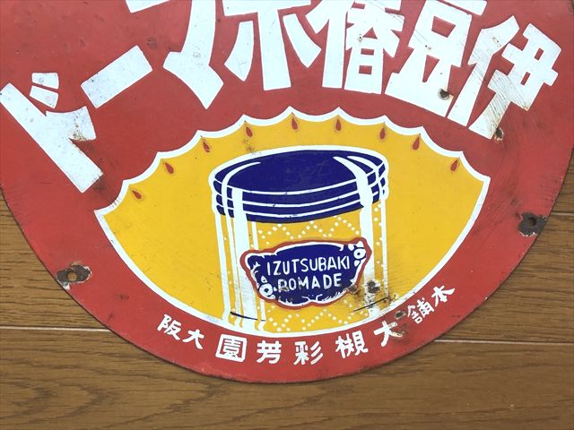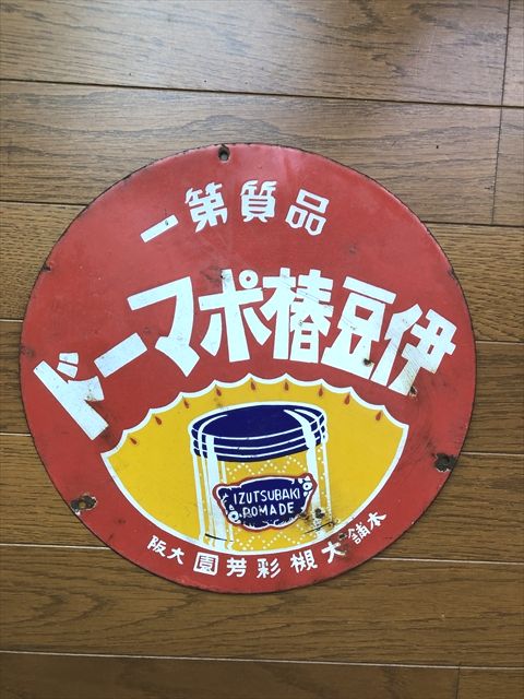 戦前 伊豆椿ポマード 片面ホーロー看板です。