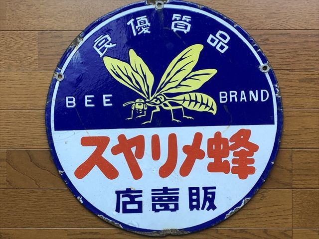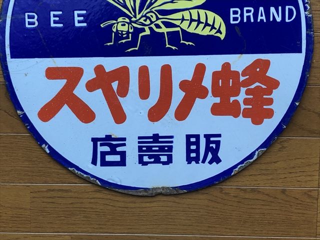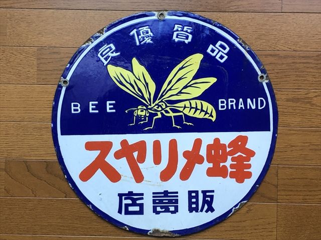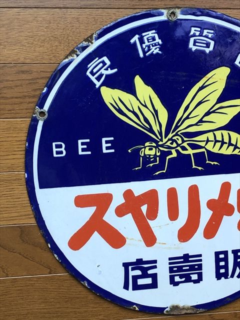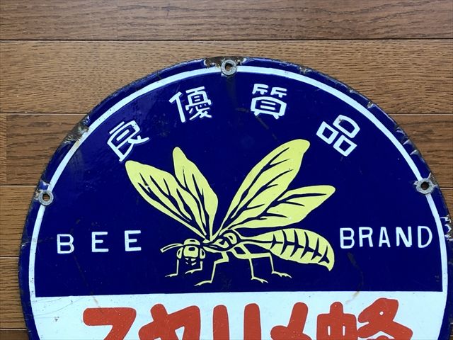 蜂メリヤス 戦前両面ホーロー看板 です。
