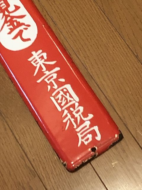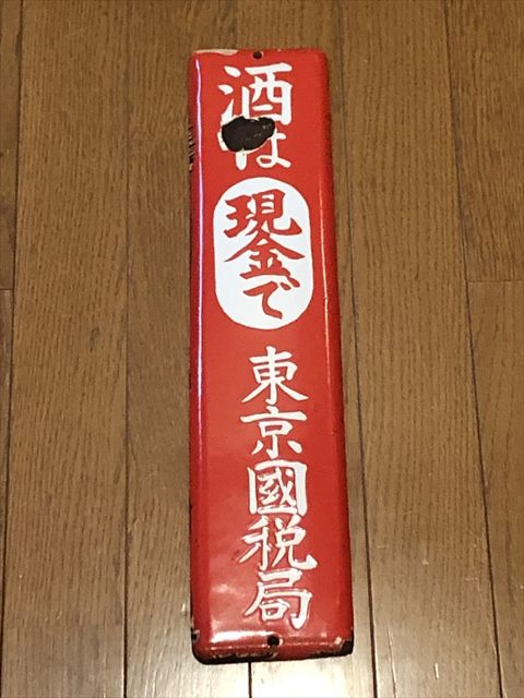 酒は現金で 東京國税局 片面のホーロー看板です。