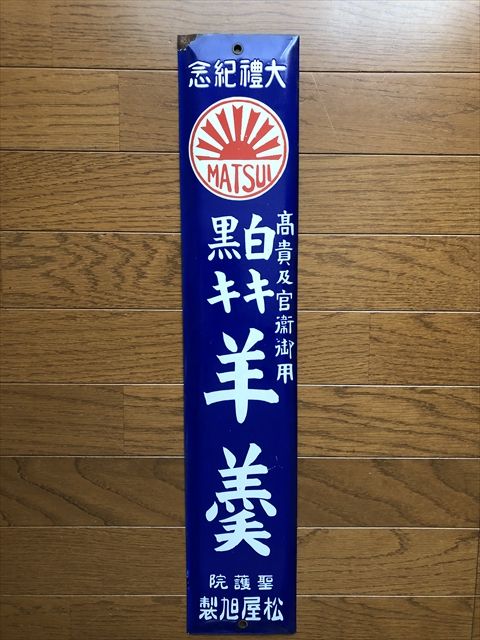 戦前 聖護院松屋旭製 羊羹の両面ホーロー看板です。