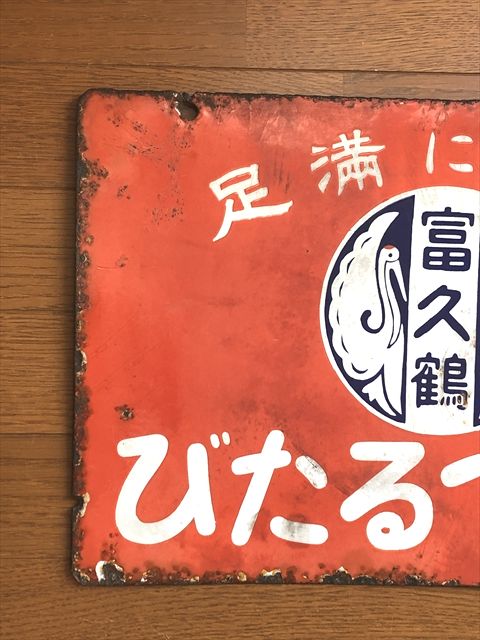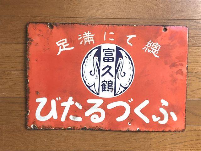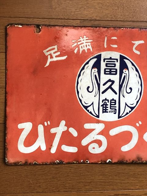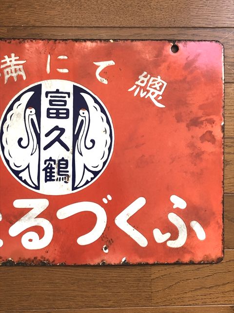 富久鶴 ふくづるたび 両面ホーロー看板です。