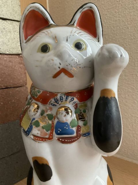 磁器の招き猫 戦前 色絵