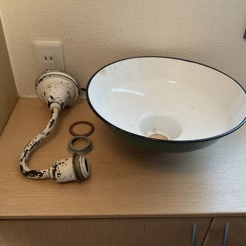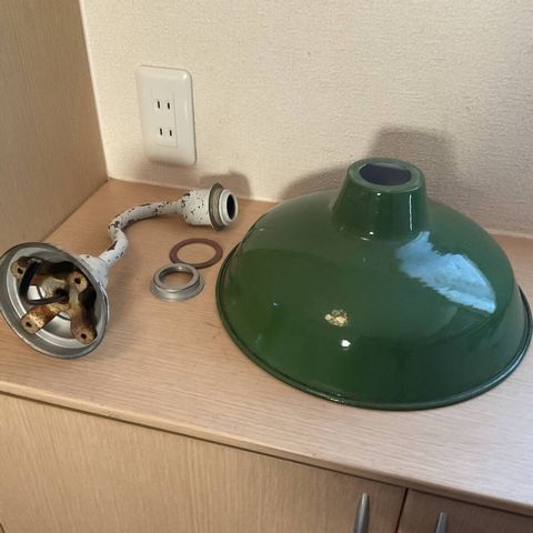 ペンキの剥げた ホーロー電笠付きブラケット照明