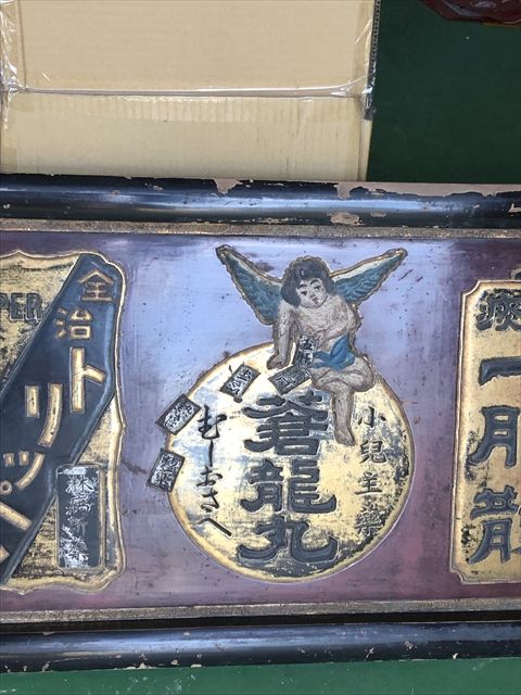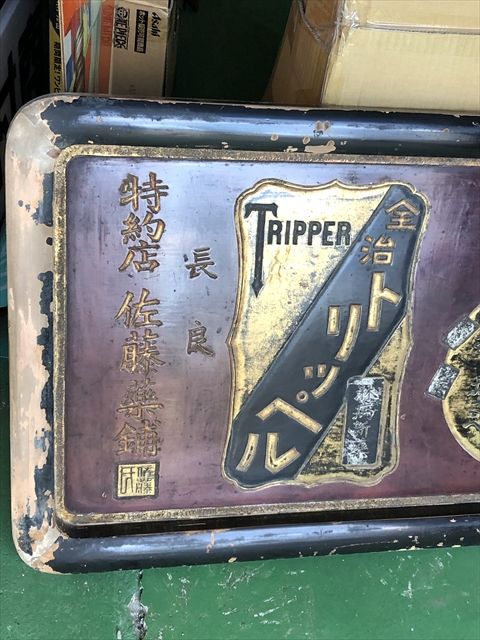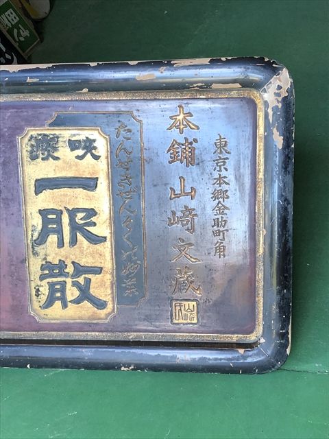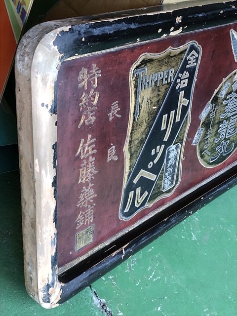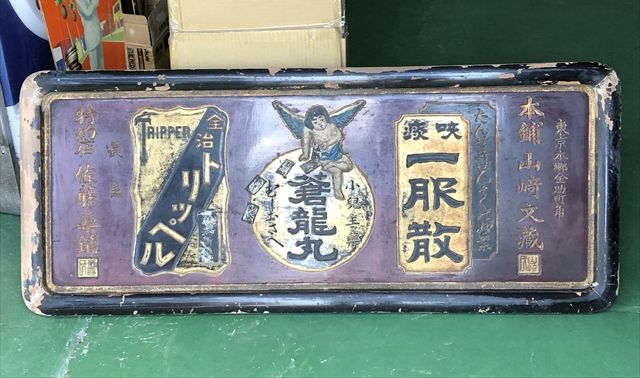 戦前 せきたんぜんそく一服散 むしおさへ蒼龍丸 全治トリッペル片面 木製金看板
