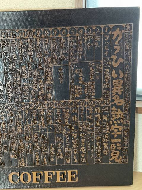 KEY COFFEE かぅひい異名熟字一覧 木彫風看板